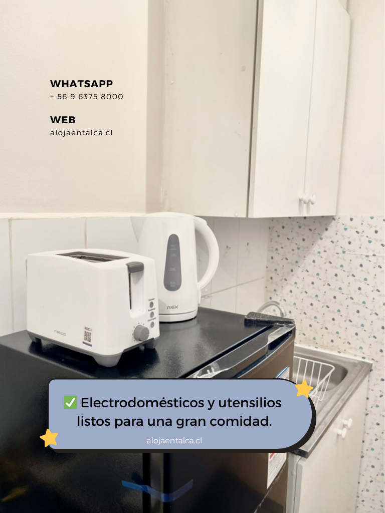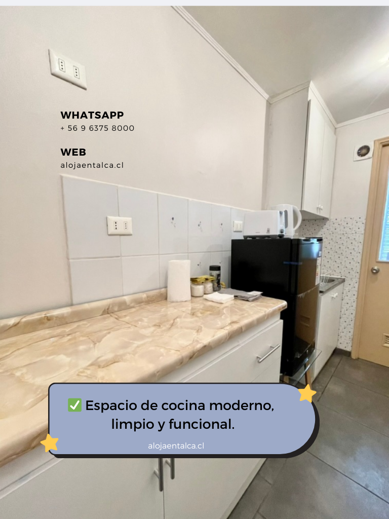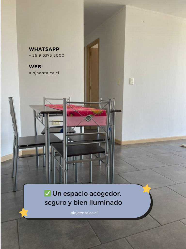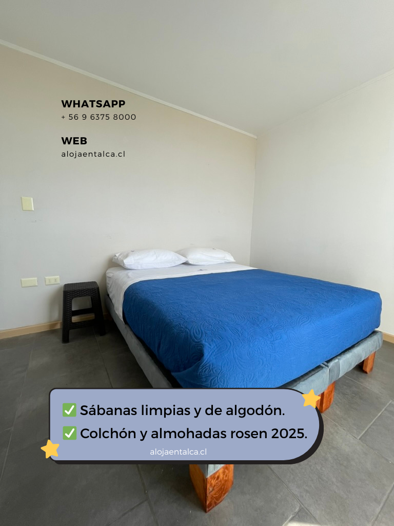 Cada detalle ha sido pensado para que te sientas como en casa, en un espacio moderno, seguro y acogedor. ¡Reserva ahora y vive la experiencia de Alojaentalca.cl!